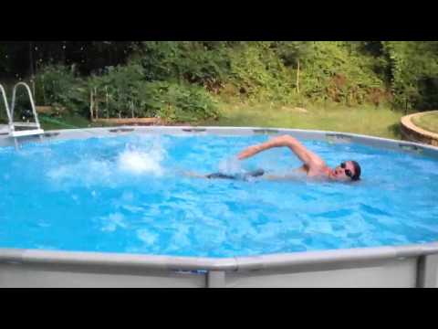 Lately though with the loss of my job, i was forced to put my YMCA membership on hiatus until a later date. Now being without a pool, I resorted back to the same'ol until recently. My dad purchased one of those round, wide family pools. It measures as 22ft round, w/ 52in. walls, so it's nothing to brag about. Swimming laps is sort of out of the question, though I enjoyed swimming laps much more than doing water aerobics. Is there still some kind of basic workout regimen that can be done like this?