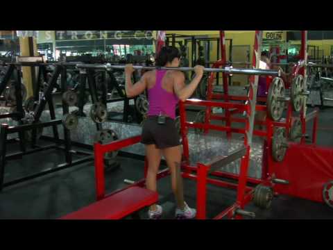 I have been exploring the equipment in my gym and have decided I am officially ready to start tomorrow. I had the trainer at the gym show me the equipment. There are two types of squat racks at my gym, one with cables, one without. He suggested I start on the one with cables since I have never used the bars before. Will it be as beneficial as the one without? What are your thoughts? Also, when I practiced with it, I noticed my arms and shoulders were sore, was I holding my arms wrong or something?