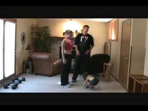 Ah, something I to alot with in kickboxing. Put your right hand on top of your head. Now raising your right leg and bending to the side at the same time without letting your hand come off your head, try to touch your elbow and kneecap together. You can also do this by raising the left leg up and "crossing over" to touch your right elbow to the left knee cap.