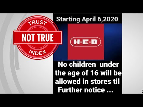 A misinformation going around is H-E-B stores (maybe a few others ) are imposing Age restrictions. They are not this is a lie spread by folks mad that kids aren’t at home for their safety. Single Parents,Abuser at home,to ones with the newborn twins or triplets so send one kid with Dad/Mom because theirs no one to watch their kid/kids for that time -do not have to starve ! Kids are still allowed in stores they know some don’t have the luxury to leave kids at home. So if you hear a young parent say this let them know it’s a fake article spreading.